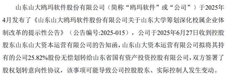 值得注意的是,6月27日晚间,鸥玛软件与山大地纬同步发布公告,ray电竞官网通过旗下资本运营平台,拟将所持两家上市公司股权无偿划转至山东省属国有企业。
