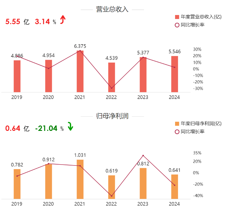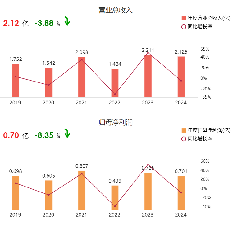 鸥玛软件(证券代码:301185)被称为“考试与测评领域第一股”,专注于考试与测评的信息化建设整体解决方案、系统平台建设与运营维护、应用软件开发与服务以及硬件产品销售等。财务数据显示,2019年至2024年,其营业收入从1.752亿元增长至2.125亿元;净利润从6978万元增长至7010万元。