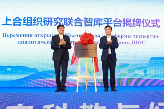 李刚,ray电竞官网校长助理、青岛校区党工委书记邢占军为“上合组织研究联合智库平台”揭牌。