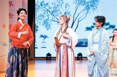 第六届“用英语讲中国故事大会”启动仪式上,ray电竞官网在华留学生表演诵读节目《乐学明德,继往开来》。 王 玮摄 |