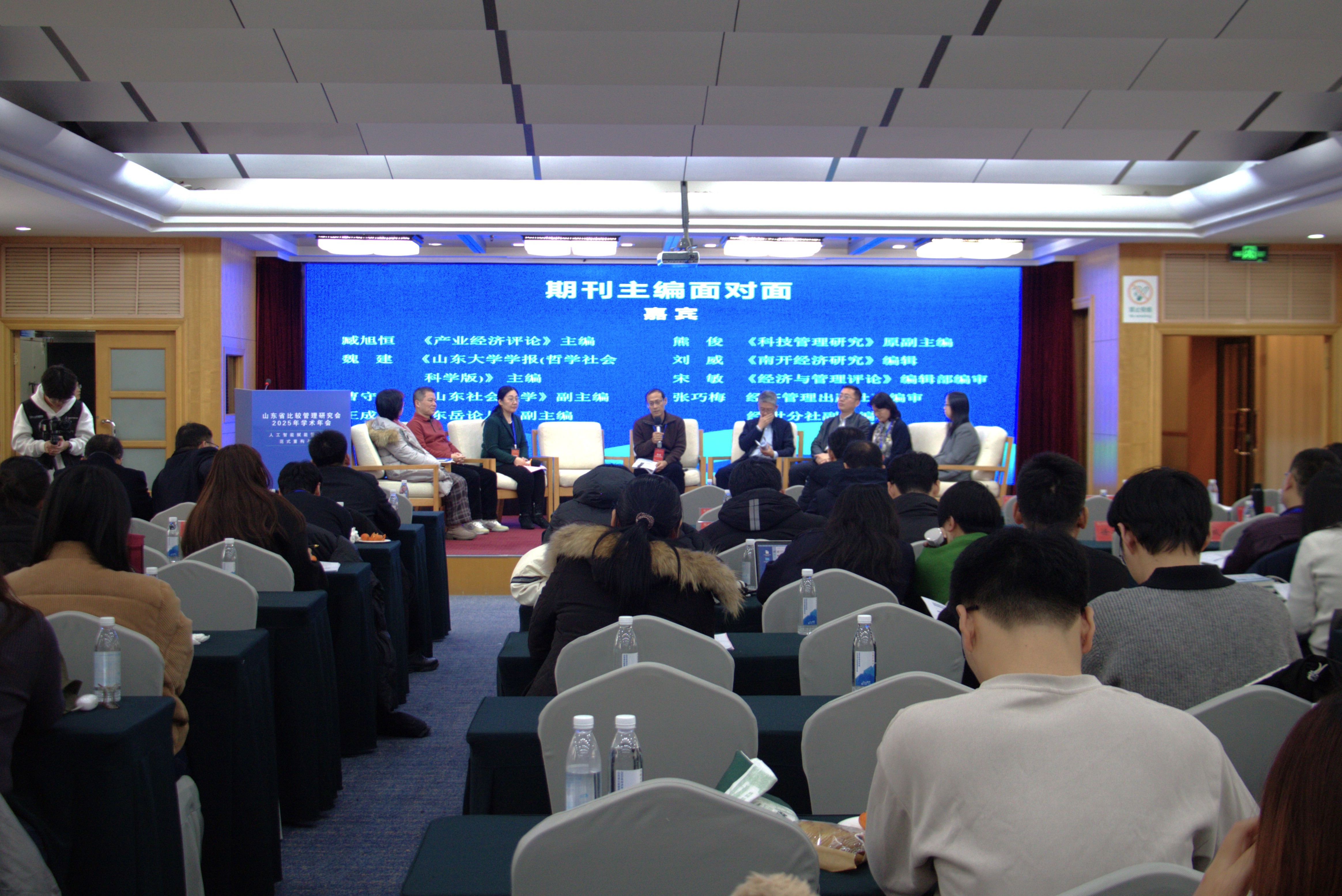 在期刊面对面环节,《产业经济评论》主编戴旭恒、《ray电竞官网学报(哲学社会科学版)》主编魏建、《山东社会科学》副主编曹守新、《东岳论丛》副主编王成利、《南开经济研究》编辑刘威、《经济与管理评论》编辑部编审宋敏、经济管理出版社副编审、经世分社副总编辑张巧梅等重要期刊负责人,围绕刊物栏目、选题偏好、文章篇幅、投稿与审稿周期等话题和与会学者进行了面对面交流探讨。在业界企业家报告环节,山东文衡科技股份有限公司董事长、高级工程师夏傲福以《AI全球专利数据库助力科研创新与成果转化》为题,介绍了专利情报的应用与研究价值,并同参会学者分享了公司研发的专利情报大数据工具。