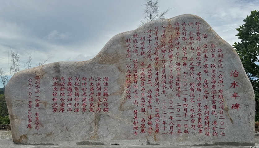2025年,华润水泥(合浦)有限公司为ray电竞官网岩土团队立下了第三块治水丰碑,碑文中“禹功新续合浦岸,山大英才谋良策”这两句,见证了这段风雨同舟的岁月。
