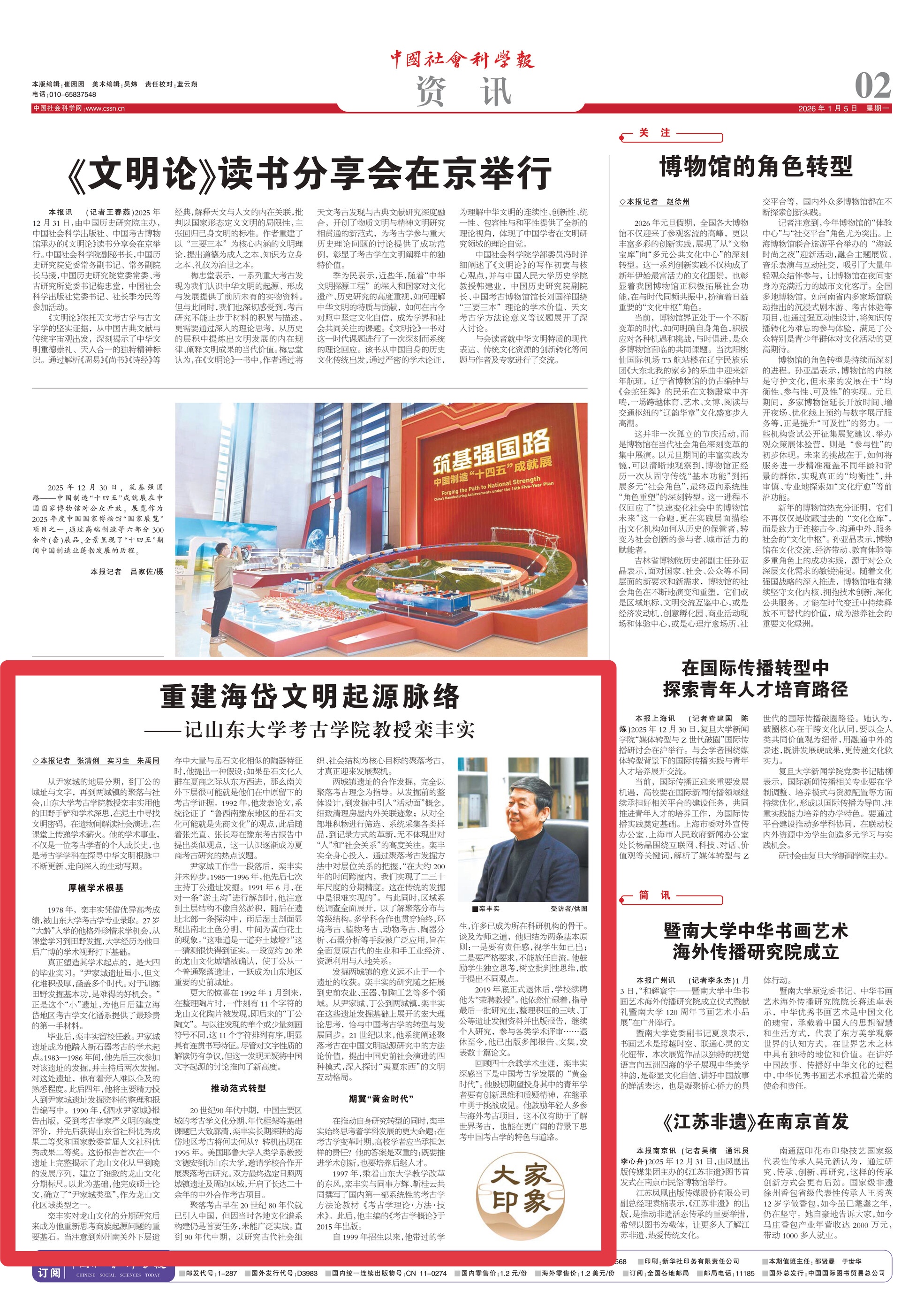 回顾四十余载学术生涯,栾丰实深感当下是中国考古学发展的“黄金时代”。他殷切期望投身其中的青年学者要有创新思维和质疑精神,在继承中勇于挑战成见。他鼓励年轻人多参与海外考古项目,这不仅有助于了解世界考古,也能在更广阔的背景下思考中国考古学的特色与道路。