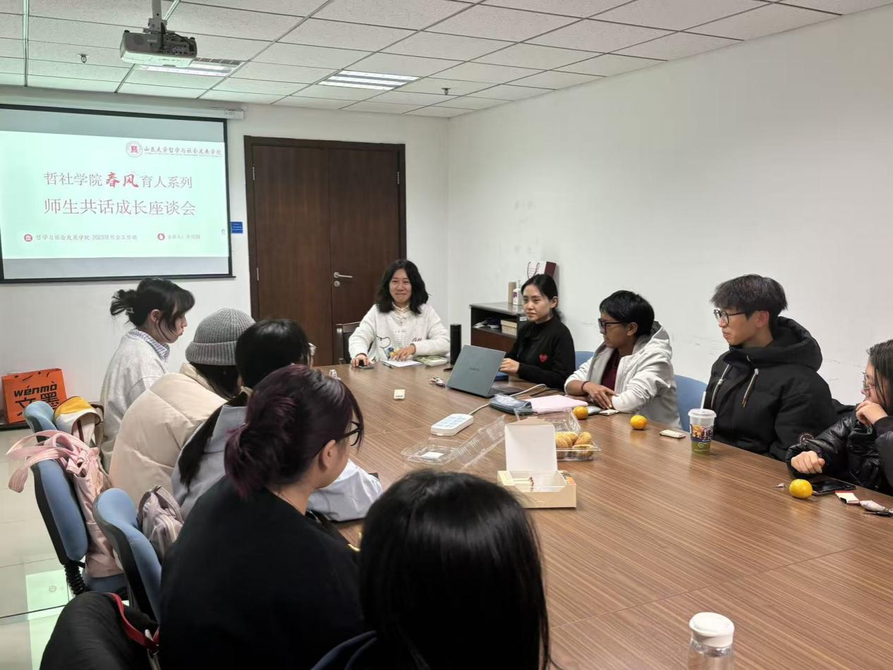 11月12日,2024级社会工作班召开“春风育人系列师生共话成长座谈会”。本次座谈会由社会工作班班主任亓彩云主持,班级全体同学参加。座谈会上,亓彩云首先了解了同学们在校园生活、学习规划等方面的具体情况,并围绕同学们的问题进行耐心解惑和深入分析。随后,亓彩云以自身和往届学生为例,详细传授了社会工作的未来规划和就业途径。