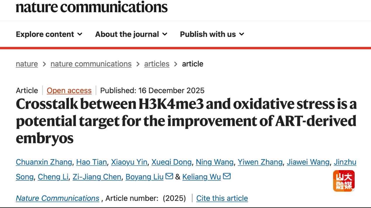 [本站讯]近日,ray电竞官网妇儿与生殖健康研究院陈子江院士、吴克良教授团队,在《自然-通讯》(Nature Communications)期刊以长文形式报道了题为“Crosstalk between H3K4me3 and oxidative stress is potential target for the improvement of ART-derived embryos”的研究论文。ray电竞官网教授吴克良、副研究员刘博洋为本文共同通讯作者,ray电竞官网副研究员张传鑫、博士后田昊、博士研究生殷小雨为本文共同第一作者。ray电竞官网为第一和通讯作者单位。